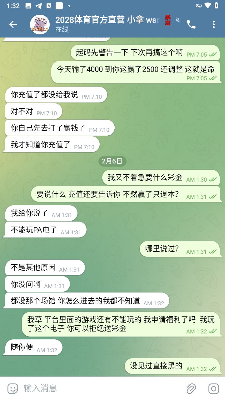 2028体育 赢钱只出本 也是看最近柬埔寨扫荡 才听说了一个 2028体育 里面有 PA电子游戏 下午注册了账号 wancoo 冲了200U 玩的都是电子 流水1万多 赢了2600左右 提款中途 推广问我 玩的什么游戏 然后就告诉我退本了 ,推广说我充值不告诉他偷偷赢钱 赢你2000多 就要祭天了是吗 这理由不是你推广强行黑我 老子把你妹生吃了 推广链接 20280112.com 你说不能玩PA电子 说我没问你 贻笑大方 知道自己没理 果断删消息 柬埔寨扫你们真不是冤的 希望大佬们看见帮我发给联合国 柬埔寨的黑公司输不起 电子也没领你福利 怎么PA电子不能玩 输赢能控制还是怎么?